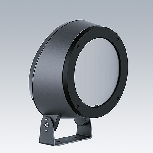 Projecteur architectural de taille Large Monté sur étrier avec LED alimentées en 1050 mA et un faisceau intensif. Driver, gradable DALI-2.  Classe électrique II, IP66, IK08.