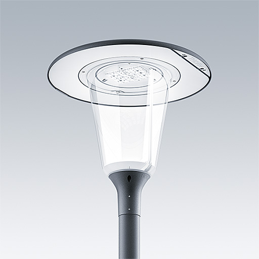 Lanterne LED discrète, à montage top, avec une conception intemporelle. Driver pour 24 LED, entraînés à 500mA avec une distribution Confort pour rue large (asymétrique). Classe électrique I, IP66, IK10. Capot et socle : aluminium Moulage sous pression thermopoudré résistant à la corrosion et adapté aux environnements C5, finition texturé gris anthracite 900 sablé. Boîtier : Polycarbonate (PC) large anti-UV avec finition transparent. Livré avec LED 4 000 K. Montage top sur mât de Ø 76mm. Pré-câblé avec 5 m de câble.