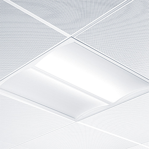 Luminaire LED directe, modulaire et encastré. Recouvrable. Electronique, non gradable. Classe électrique I, IP44_IP20, IK03. Corps : acier haute réflectivité. Cadre et embouts : Polycarbonate (PC). Diffuseur : Polycarbonate (PC) avec dissipateur thermique aluminium. Appareillage : acier blanc thermopoudré. Convient pour les installations en assise ou en recouvrant (avec accessoires). Livré avec LED 4 000 K