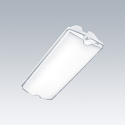 Luminaire de sécurité à LED avec optique antipanique pour montage apparent, au mur ou au plafond. Montage aisé par simple « clic » après l'installation du boîtier de base.
