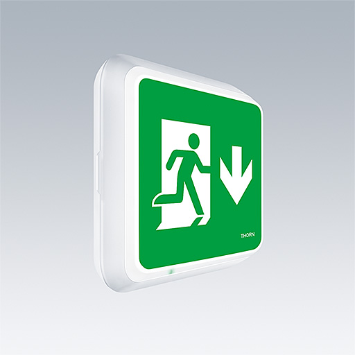 Luminaire à panneau de sécurité LED carré, plafonnier. Luminaire pour alimentation centralisée de l'éclairage de sécurité pour une surveillance individuelle du luminaire via DALI (certifié DALI-2), niveau d'intensité réglable. Interface NFC pour l’adressage, la configuration et la maintenance via PROset Pen (article : 22170290) ou PROset app., adressage également possible autrement visuellement ou via l’adressage EZ. Alimentation : 220-240 Vca (± 10%), 50/60 Hz ; 176-280 Vcc. Corps : Polycarbonate (PC) moulé par injection, blanc (RAL 9016). Diffuseur : Polycarbonate (PC) opale, avec pictogramme flèche directionnelle (bas) de sortie de secours imprimé et collé, conformément à ISO 7010. Rétro-éclairage uniforme du pictogramme, luminance > 500 cd/m² dans la partie blanche et 200 cd / m² en moyenne dans la partie secteur (conformément à DIN 4844), 2 cd / m² minimum en mode de secours (conformément à EN 1838). Distance de reconnaissance conforme à EN 1838 : 44 m. Classe électrique II, IP65, Résistance aux impacts : IK10. Température ambiante : -30°C à +35°C. Convient pour fixation directe au mur. Câblage à piquage/repiquage possible pour les câbles de jusqu’à 2,5 mm². Compatibilité BESA. Certificat alimentaire (à utiliser dans les zones avec des aliments entièrement emballés). Luminaire câblé avec des fils sans halogène et sans silicone. Luminaire avec symbole D (pour utilisation dans les environnements où l’accumulation de poussière conductrice sur le luminaire peut être attendue).