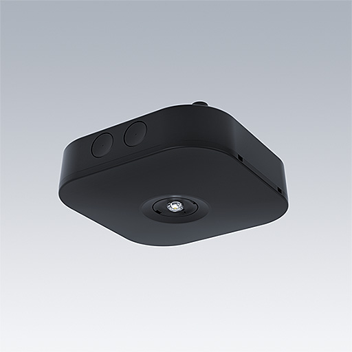 Luminaire de sécurité à LED pour un montage apparent au plafond. Optique orientable et pouvant être fixé par pas de 45°.