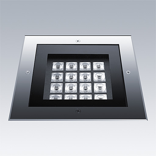 Axyl Opera montage encastré dans le sol, luminaire architectural à LED pour l'éclairage décoratif des façades, avec et distribution asymétrique. Classe électrique I.. gradable DALI-2 Driver. IP67, Résistance aux impacts : IK09. Boîtier : aluminium Moulage sous pression, sans peinture texturé acier inoxydable. Température de service de Température ambiante : -20°C à +45°C. Livré avec LED 3 000 K..