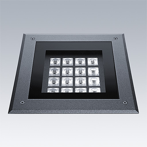 Axyl Opera montage encastré dans le sol, luminaire architectural à LED pour l'éclairage décoratif des façades, avec et distribution asymétrique. Classe électrique I.. gradable DALI-2 Driver. IP67, Résistance aux impacts : IK09. Boîtier : aluminium Moulage sous pression, thermopoudré texturé anthracite. Température de service de Température ambiante : -20°C à +45°C. Livré avec LED 3 000 K..