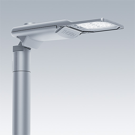 Lanterne d’éclairage routier LED moderne (Small) avec 36 LED alimentées en 350mA avec une optique Route étroite. Programmable Driver. Classe électrique II, IP66, IK09. Corps : aluminium (EN AC-44300) Moulage sous pression, thermopoudré gris clair 150 sablé texturé. Emmanchement : aluminium (EN AC-44300), Moulage sous pression sans peinture. Fermeture : verre ép. 5 mm. Visserie : Acier à ressorts. Livré avec un adaptateur d’emmanchement Ø 60 mm qui convient pour montage top (inclinaison 0°/5°/10°/15°/20°) ou latéral (inclinaison -15°/-10°/-5°/0°/5°/10°/15°). Equipé d'un 50% circuit de réduction de puissance, qui entre en vigueur 3 heures avant et 5 heures après un minuit calculé. Livré avec LED 4 000 K. Protection contre les surtensions : 10 kV en mode commun single pulse et 8 kV en mode commun multipulse; 6 kV en mode différentiel multipulse. Si un système DALI est connecté: 6 kV en mode mode commun et mode différentiel multipulse.