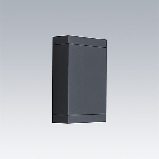 Axyl Glow fixation murale, luminaire architectural à LED pour l'éclairage décoratif des façades, avec 2 échancrures et distribution. Classe électrique III. gradable DALI-2 Déporté Driver. IP65, Résistance aux impacts : IK06. Boîtier : aluminium Moulage sous pression, thermopoudré texturé anthracite. Température de service de Température ambiante : -20°C à +50°C. Livré avec LED 2 700 K.