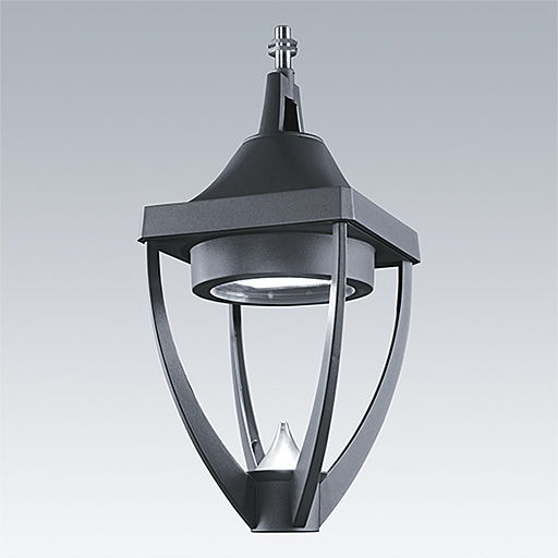 Lanterne LED patrimoine moderne Suspendu via 34G. avec optique fermée. Electronique. Classe électrique II, IP65, IK08. Corps : aluminium Moulage sous pression thermopoudré gris 900, finition texturé (close to RAL 7043). Boîtier : verre trempé plat. Protection contre les surtensions : 10 kV en mode commun single pulse et 8 kV en mode commun multipulse; 6 kV en mode différentiel multipulse. Si un système DALI est connecté: 6 kV en mode mode commun et mode différentiel multipulse. Livré avec LED 3 000 K.