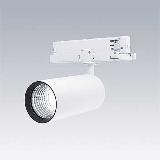Projecteur LED pour installation sur rail triphasé avec distribution lumineuse de type projection et température de couleur stabilisée. Electronique, non gradable. Classe électrique II, IP20. Corps : aluminium Moulage sous pression, peinture microtexturée blanc. Réflecteur : PC poudré. Projecteur orientable sur le plan horizontal de 360° et inclinable sur le plan vertical de 90°. Livré avec LED 3 000 K